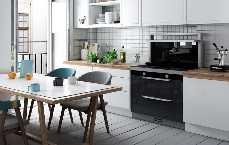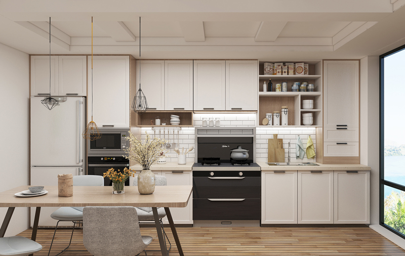 当代厨房已经成为与客厅拥有同等地位的公共空间,煮饭做菜只是其中一项功能。厨房会成为一个与客厅共融的空间,利用率越来越高,所以,厨房从“功能”往“美观”的转变是必然的。